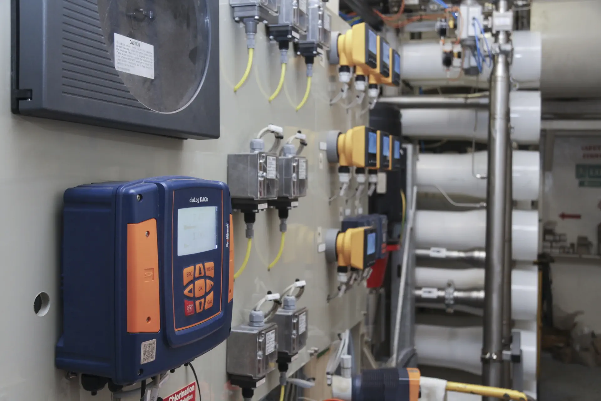With the mineralization plant, calcium and chlorine are added to the water in a fully automatically controlled manner and the pH value is adjusted. The product water thus complies with the relevant WHO and USPH regulations. The quality is permanently measured with online analysis technology and the data is recorded without gaps.